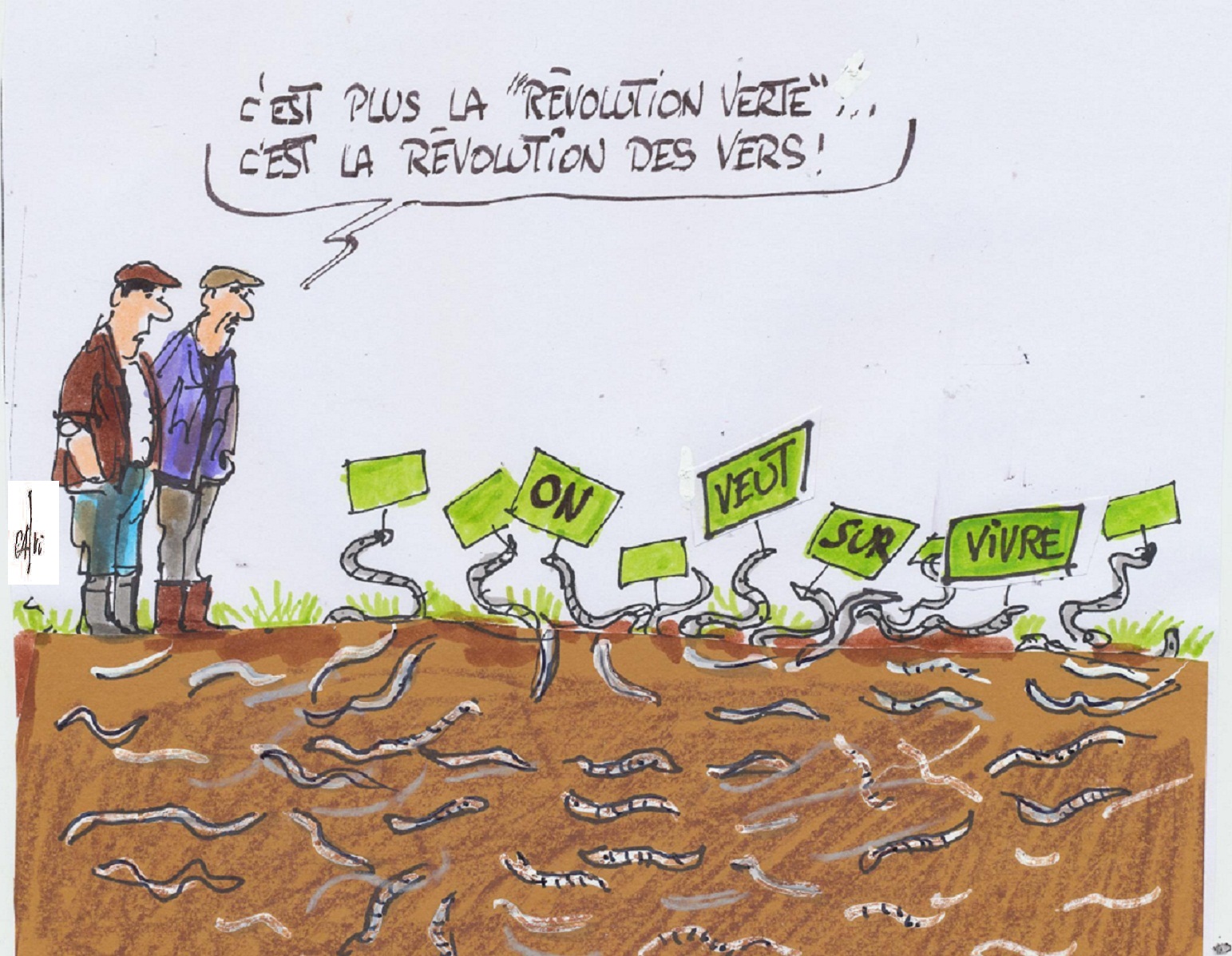 Après la seconde guerre mondiale, les agriculteurs ont été sollicités pour nourrir la population et contribuer au baby-boom. La solution proposée par les ingénieurs agronomes de cette époque, a consisté à introduire du nitrate dans les sols, après observation que les rendements augmentaient sous cette influence. Malheureusement, et nous devions l’apprendre à nos dépens, à moyen terme, le nitrate appauvrit le sol, ce qui conduit à mettre davantage d’engrais, pour entrer dans la course folle que nous connaissons bien. Egalement, sans la faune (les petits vers de terre) qui l’assouplit, le sol est devenu dur et compact. La solution aurait été de remettre des matières organiques dans le sol, mais le choix qui a été fait dans les années 60 a été celui de la mécanisation massive, afin de labourer plus profond et de casser la croûte du sol, formée par l’abus du nitrate. L’abus d »irrigation a également brûlé la matière organique. La faune ne pouvant plus se nourrir, s’est déplacée vers des contrées plus clémentes.