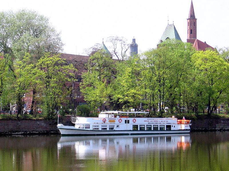 Bien sûr, comme partout la voiture est très présente à Wroclaw. Les bouchons ou ralentissement apparaissent régulièrement, même s’ils n’ont rien à voir avec ceux de la capitale, Varsovie, et feraient plaisir à voir pour un parisien ! Seulement voilà : ici la voiture coûte cher, très cher rapporté aux revenus moyens (trois fois inférieurs aux revenus français). Les transports en commun quant à eux coûtent 0,75€ pour un adulte, et moitié moins pour un enfant. Et le réseau est assez dense, avec ses 22 lignes de tramway là où une ville comme Lyon s’ennorgueillit de ses 5 lignes et du grand retour du tram (qui n’a jamais disparu en Pologne). Aux bus s’ajoutent des navettes gratuites pour aller magasiner dans les centres commerciaux situés en périphérie. Et puis, il faut le voir d’avion ou sur une photo sattellite, la ville est généreusement pourvue d’espaces verts en tout genre : de nombreux parcs et jardins urbains, qui sont autant de « tampons » ou filtres à particules naturels. Ils s’avèrent bien plus efficaces que les filtres à particules artificiels de nos moteurs diesel qui ne jouent bien leur rôle qu’à plein régime, autrement dit pas en usage urbain à vitesse ralentie. Plus d’arbres et moins de moteurs diesel, c’est la stratégie locale.Wroclaw Odra