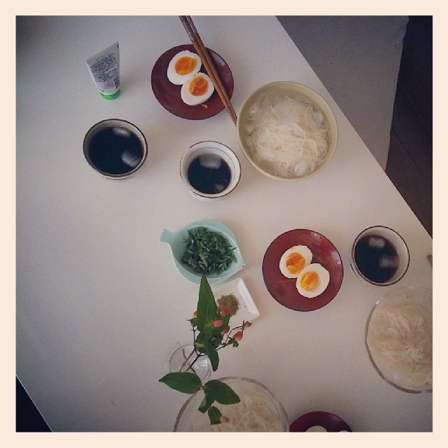 On découvre que les nouilles se mangent chaudes ou froides, plongées dans de l’eau avec des glaçons. Plutôt rafraîchissant avec les 35 ° de moyenne en juillet – août à Tokyo, voire un peu plus à Kyoto.